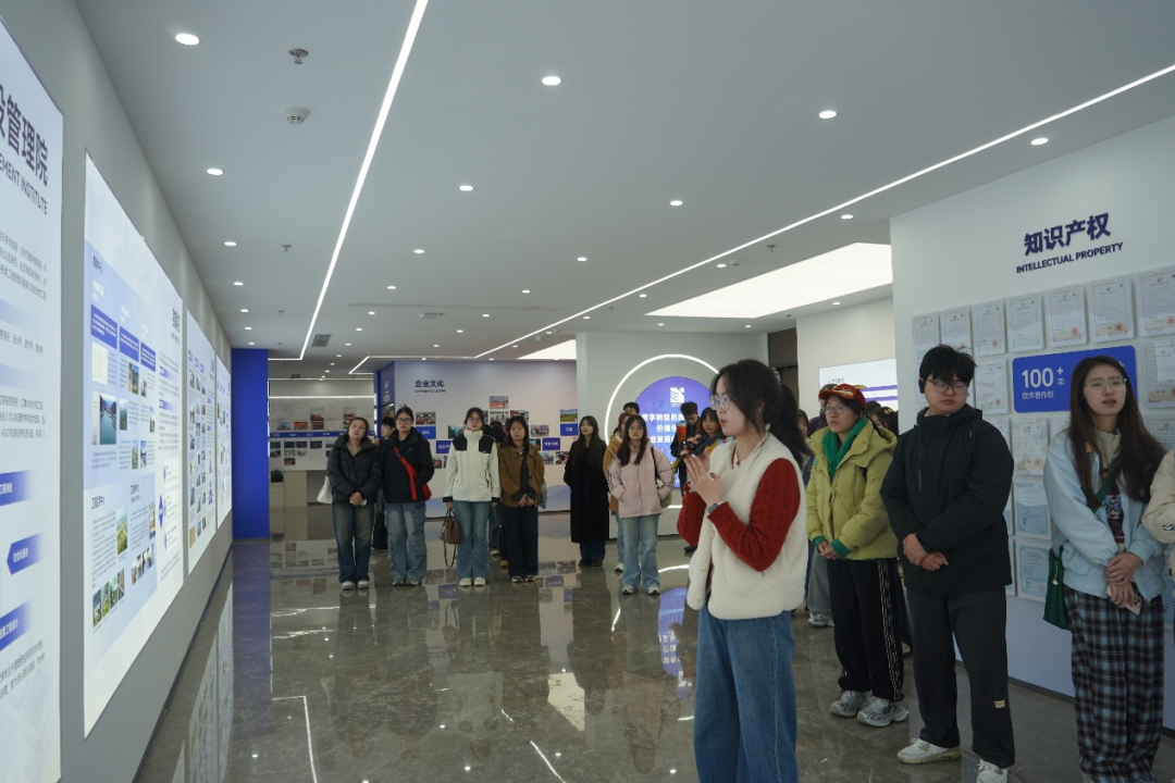 這場(chǎng)研學(xué)在水院展廳拉開序幕。在講解員的引導(dǎo)下,研學(xué)團(tuán)通過豐富的圖文資料,在展廳沉浸式了解我院的發(fā)展歷程、成果業(yè)績(jī)、企業(yè)文化,全方位感知我院在涉水產(chǎn)業(yè)、科技創(chuàng)新、團(tuán)隊(duì)建設(shè)等領(lǐng)域的綜合實(shí)力與發(fā)展成果。每一塊展板都在訴說著寧波院人砥礪前行的故事,讓同學(xué)們對(duì)水利行業(yè)有了更直觀、更深刻的認(rèn)識(shí)。
